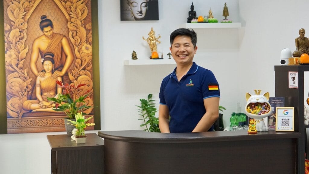 Ich fühle mich bei Toey seit der ersten Massage Behandlung sehr gut aufgehoben. Ich lasse mich regelmäßig von ihm behandeln und für mich sind es heilende Massagen, eine Mischung aus Thai Massage und Hot Stone. Für alle die sich eine Auszeit gönnen möchten oder auch das ein oder andere körperliche Problem haben, er kann es definitiv behandeln.