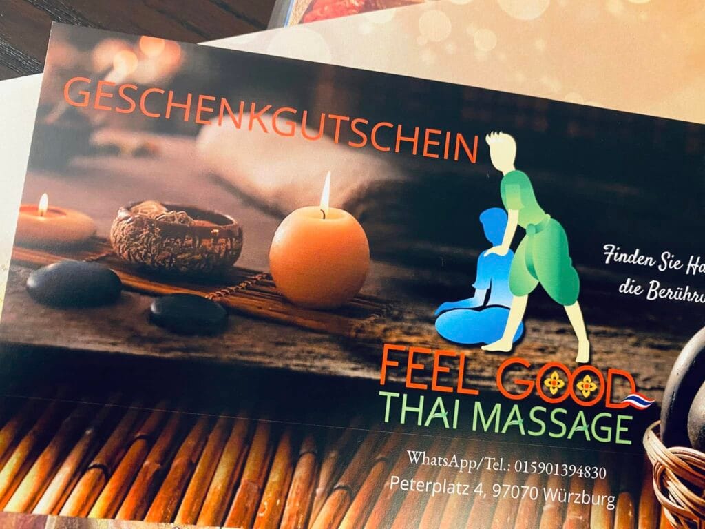 Schenken Sie das, was wirklich zählt: Gesundheit, Wohlbefinden und kostbare Momente der Entspannung. Mit einem Gutschein von FEEL GOOD Thai Massage zeigen Sie, dass Ihnen das Wohlergehen Ihrer Liebsten am Herzen liegt.